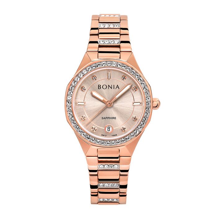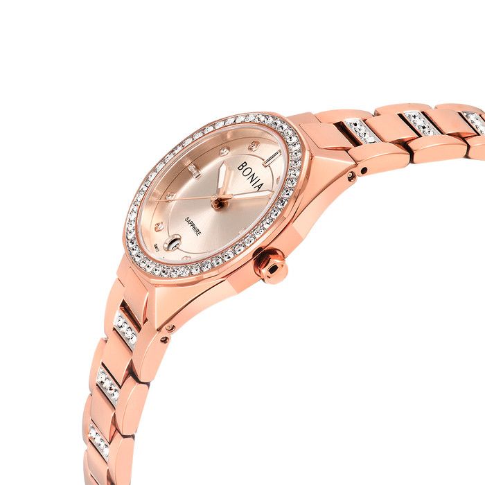 Jam Tangan Wanita Bonia Elegance Rose Dial Stainless Steel Analog B10828-2577S Original
