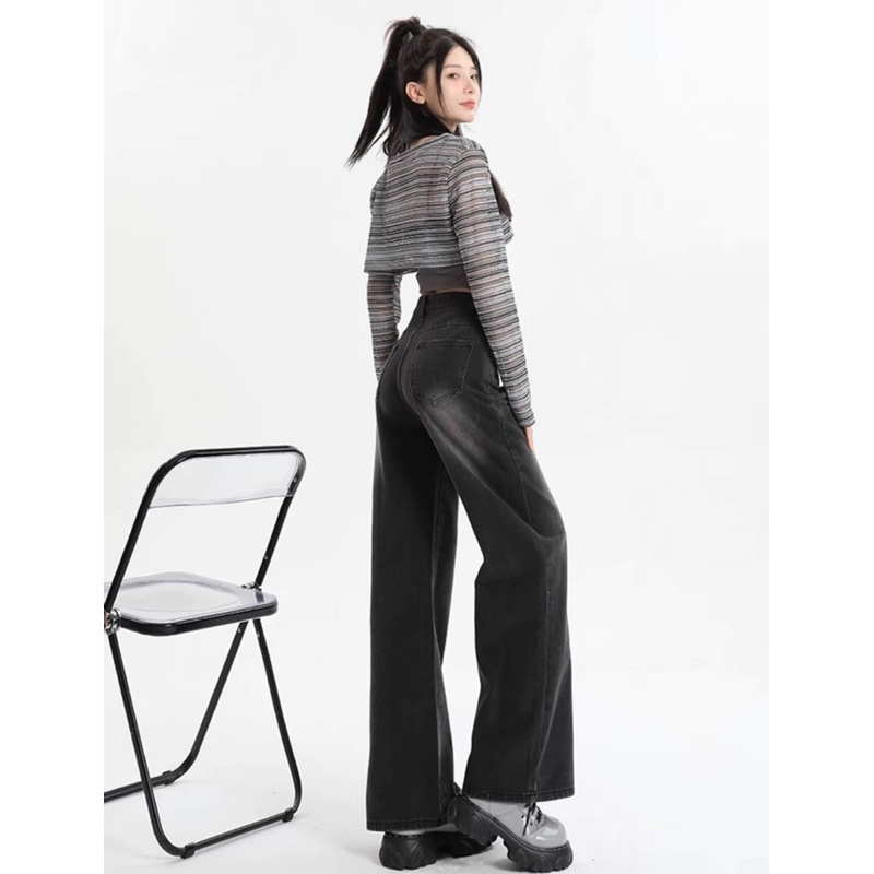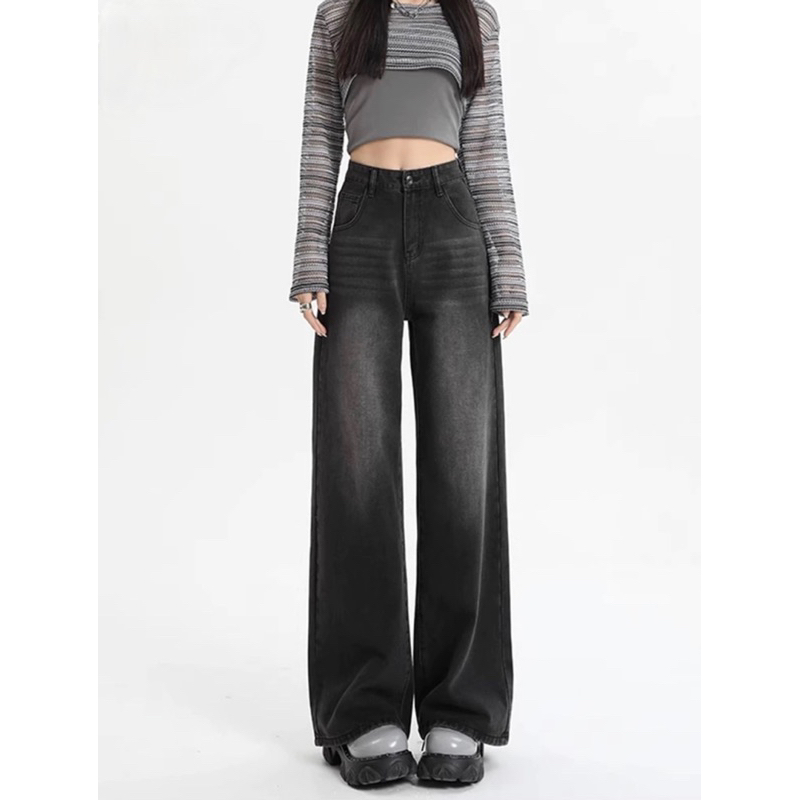 Celana Jeans Wanita/celana baggy Pants Denim Kasual Loose Jins Boyfriend - Hitam abu termurah