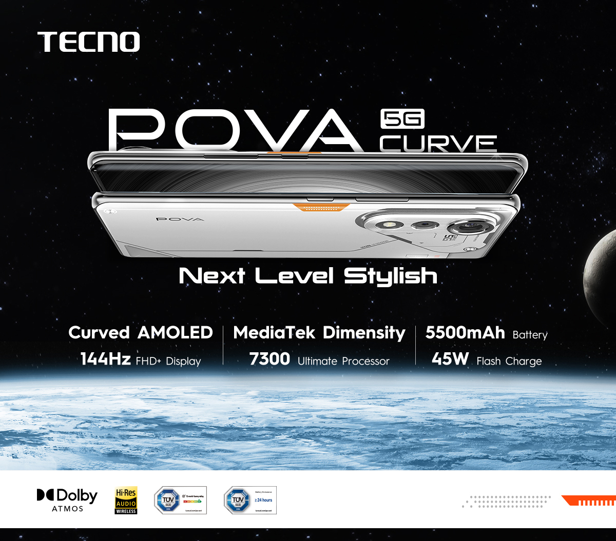 NEW TECNO POVA Curve 5G 8+8GB/256GB, 5500mmAh + Bypass Charging 2.0 , Mediatek D7300 Ultimate 5G, 6,78" Curved AMOLED