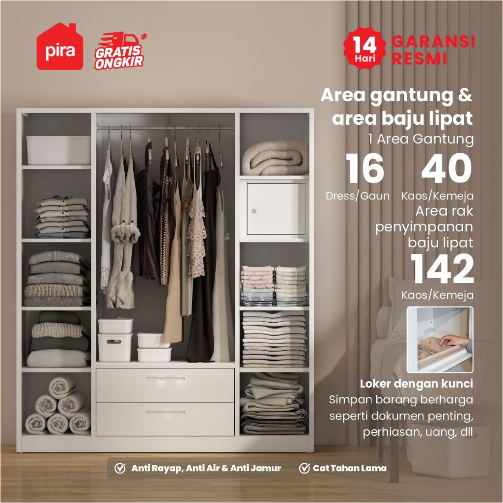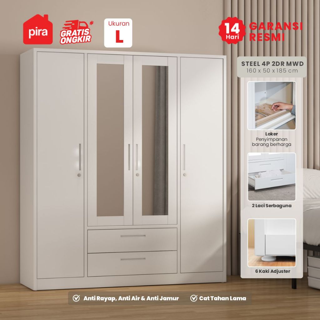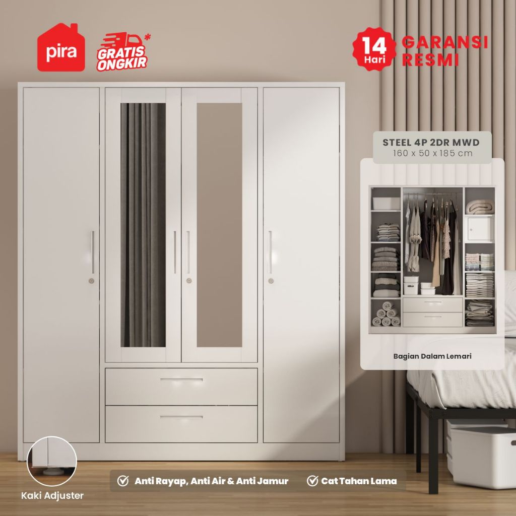 PIRA - STEEL 4P 2DR MWD Lemari Pakaian Besi 4 Pintu dengan Cermin dan 2 Laci