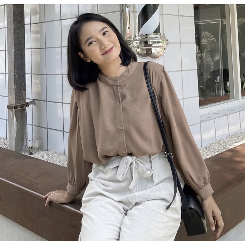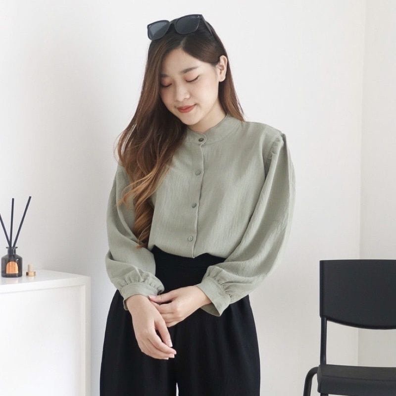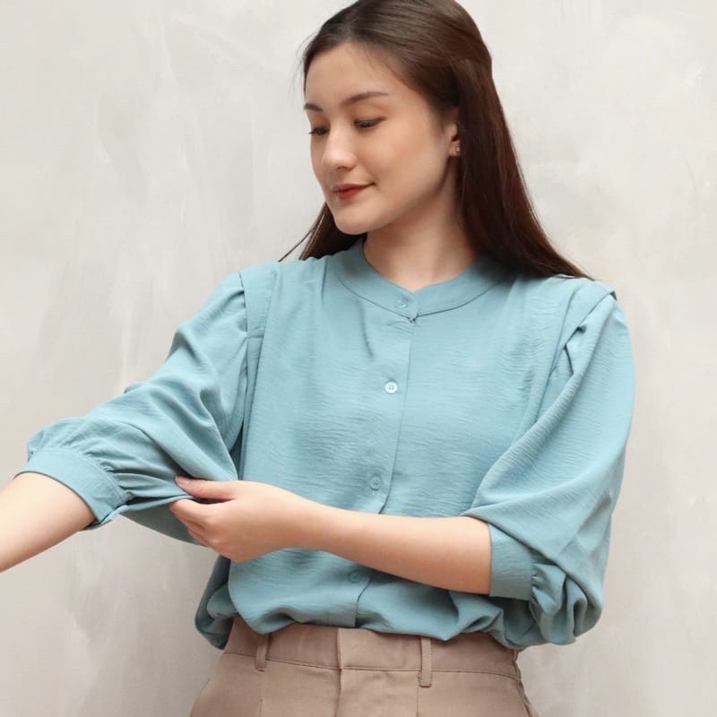 Kemeja Wanita Blouse River Oneck AirFlow Bahan Crinkle Premium