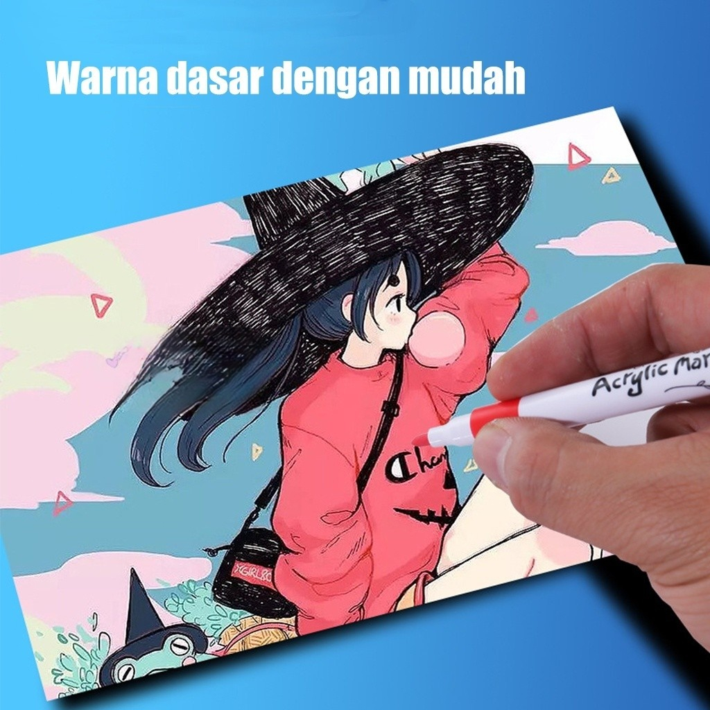 rylic Marker Set Spidol Akrilik DIY Painting Spidol Pastel Pulpen Highlight Drawing Warna