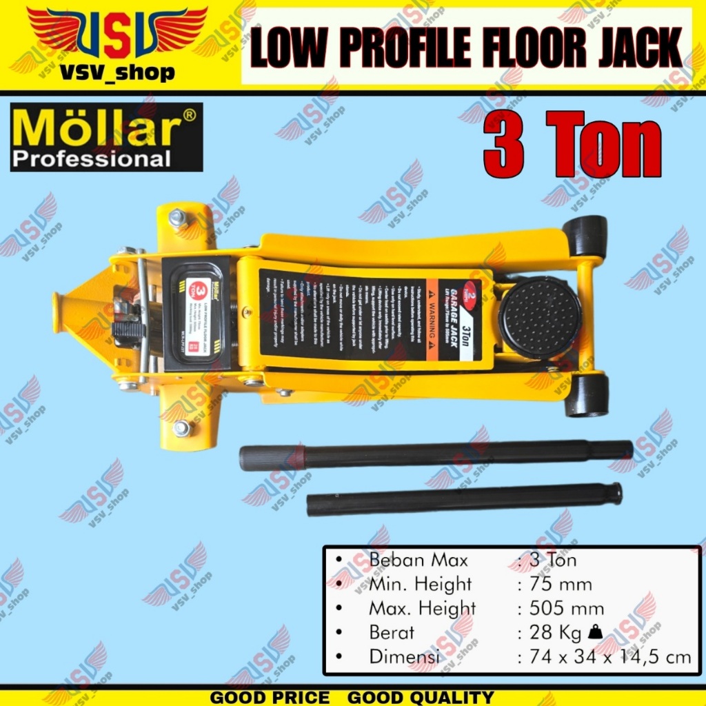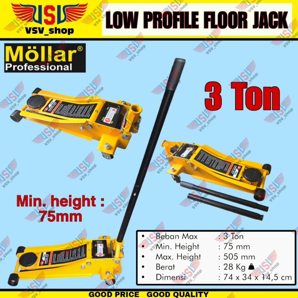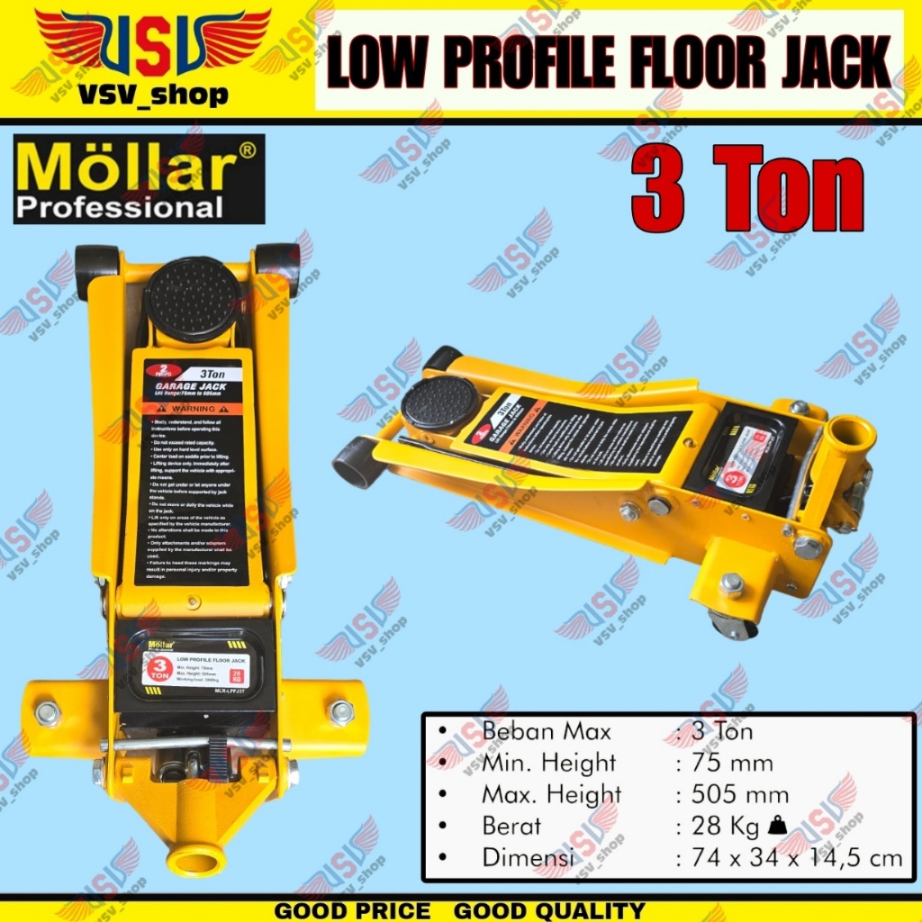 Dongkrak Buaya Ceper 3Ton Low Hidraulic Profile Floor Jack Double Pump MOLLAR