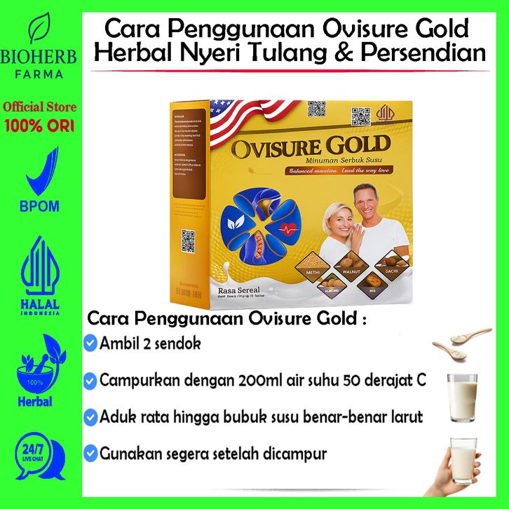 Ovisure Gold 2 Sachet Susu Untuk Atasi Kram Lutut Sendi & Peradangan Dengan Extrak Herbal Alami Protein Tumbuhan & Kacan