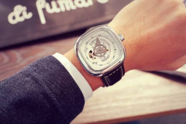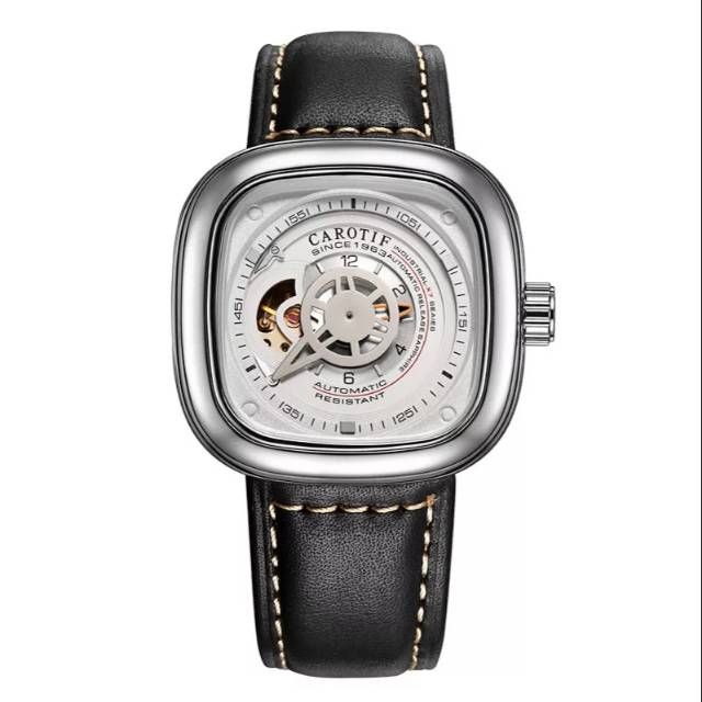 Jam Tangan Mekanik Automatic Carotif Industrial Design White Black