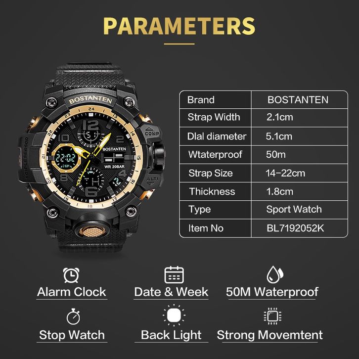 BOSTANTEN Multifungsi Jam Tangan Pria (Digital + Mekanik ) Water Resistant 50M