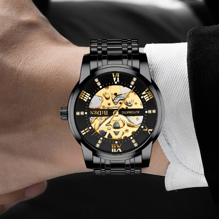 BIDEN Jam Tangan Pria Mekanik Original Anti Air Mewah Kasual Bisnis Jam Mekanik Tali Stainless Steel Jam Tangan