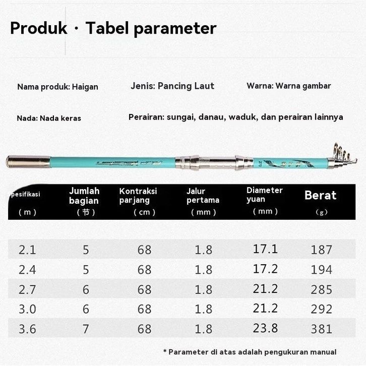 Joran Pancing Carbon Fiber Sea Fishing Rod 2.1M-4.5M/7 Tongkat Stik Pancing 4.5Meter Stick Pancingan