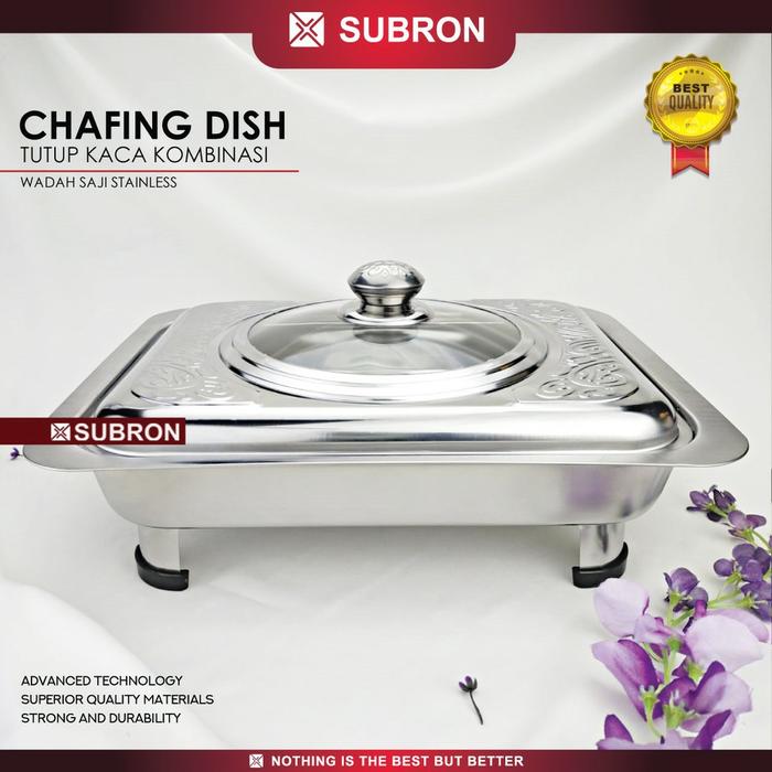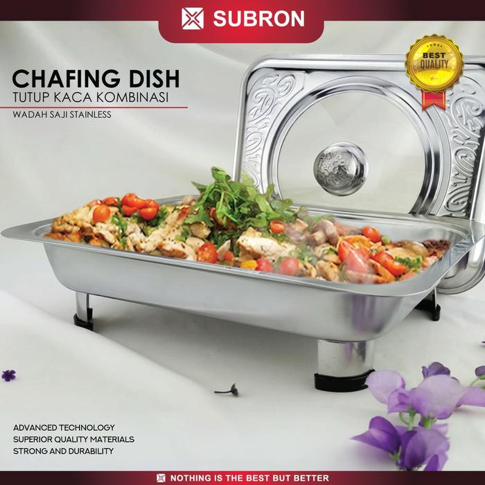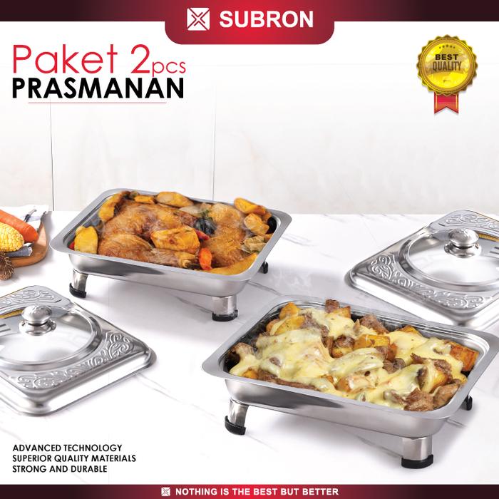 SUBRON PAKET 2PCS Fast Food Dish Baking Tray Tutup Kaca Kombinasi Tempat Prasmanan Dapur Stainless