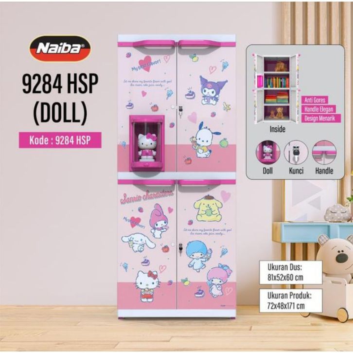PROMO NAIBA Doll Premium Lemari Plastik Karakter Doraemon Hello Kitty Mickey Lemari Baju Pakaian 4 Rak ORIGINAL