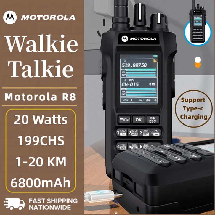HT motorola Two Way Radio Walkie Talkie long range 20KM R8 High Power 20Watt High Capacity6800mAh IP54 Tahan air