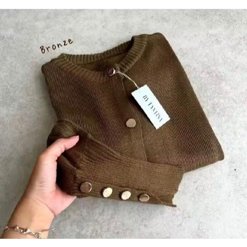 Cardigan Rajut Knit Premium Tebal Kancing Gold Atasan Outer Cewek termurah