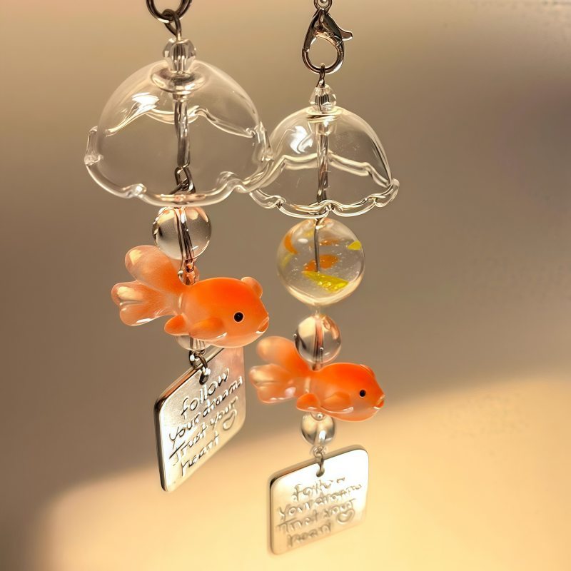 [New] Lucu fish Gantungan Kunci Akrilik/Gantungan Kunci Ikan Mas Koki Charm Hp Handphone/Tren Mode Gantungan Tas/Aksesor