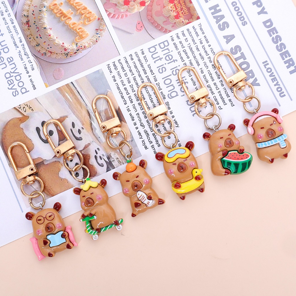 140. Keychain Mini Charm Piggie / Capybara Resin / Gantungan Kunci Kecil Kapibara