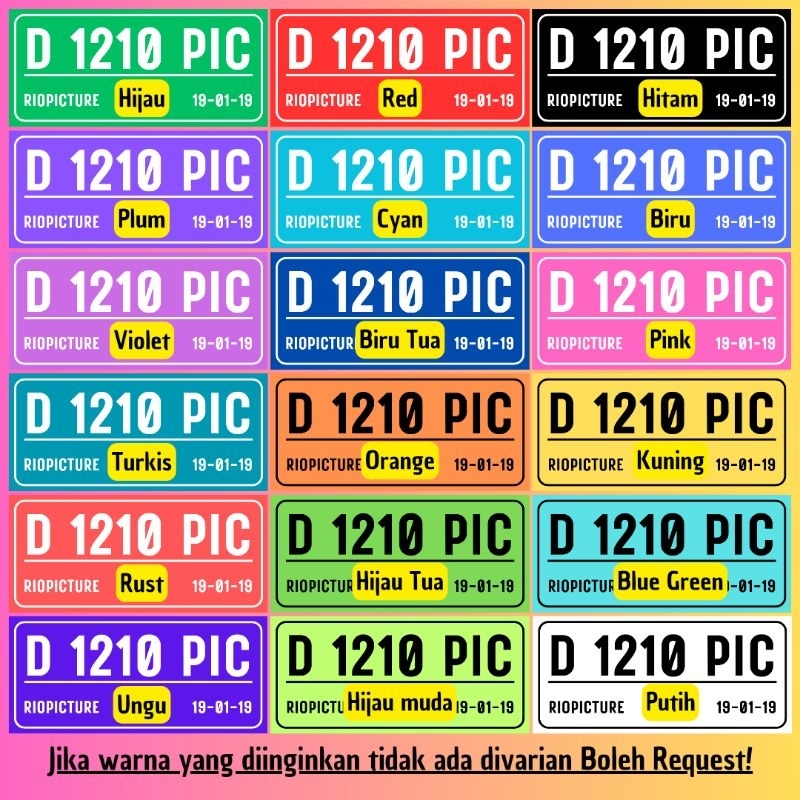 HITAM, PUTIH, HIJAU, RED, PLUM, CYAN, BIRU, VIOLET, BIRU TUA, PINK, TURKIS, ORANGE, KUNING, RUST, HIJAU TUA, BLUE GREEN, UNGU, HIJAU MUDA, LAIN-LAIN