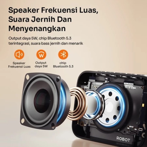 ROBOT RB620 Speaker Alarm – Jam LED Digital, Dual Smart Alarm, Bluetooth 5.3, Portable & Stylish, Garansi 1 Tahun