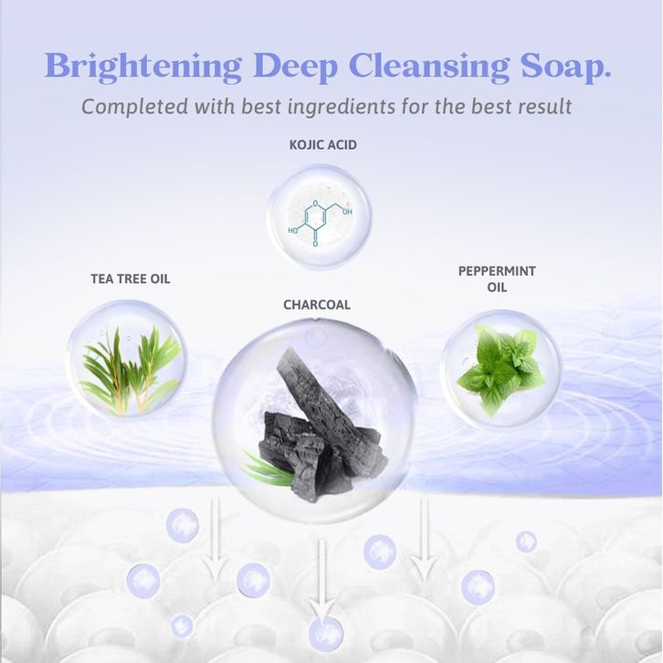 Kojic Charcoal Brightening Deep Cleansing Soap 100G Bright Glow Face Soap Sabun Pencerah Wajah