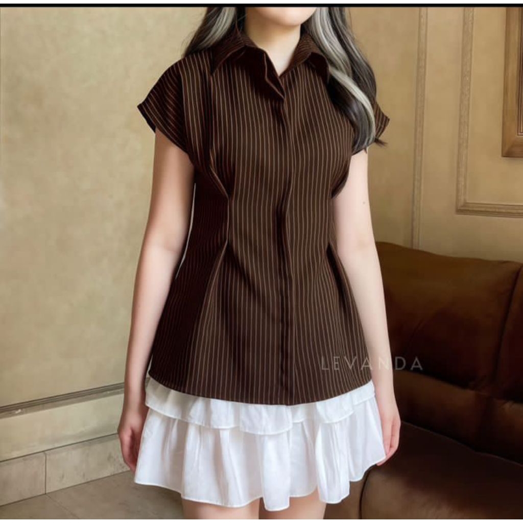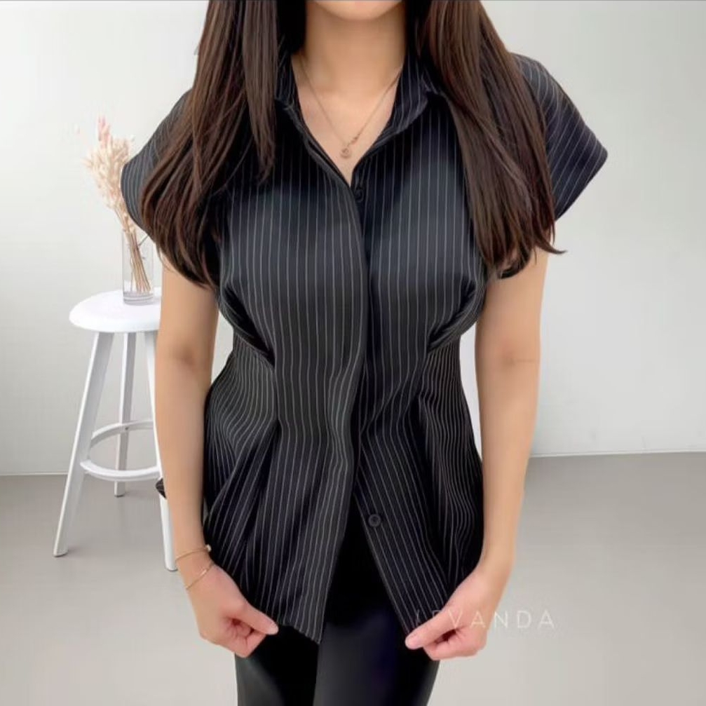 Kemeja Stripe Wanita | Kemeja Salur Wanita Lengan Pendek | Stripe Fitted Stripe