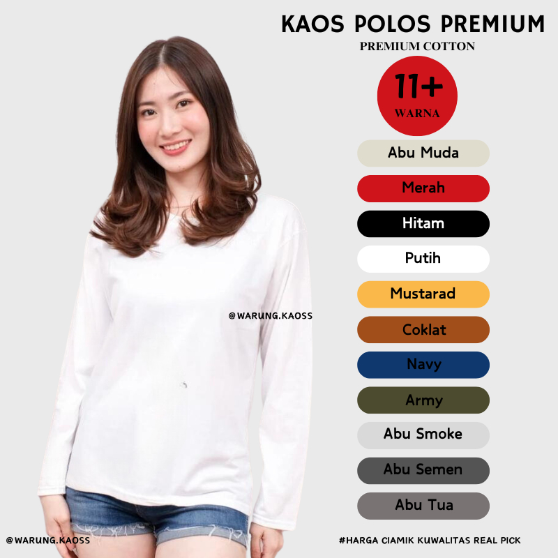 Kaos Polos Lengan Panjang Wanita Pria Cotton Combed Premium - Kaos Lengan Panjang Pria Wanita ROUND NECK REGULER FIT - K