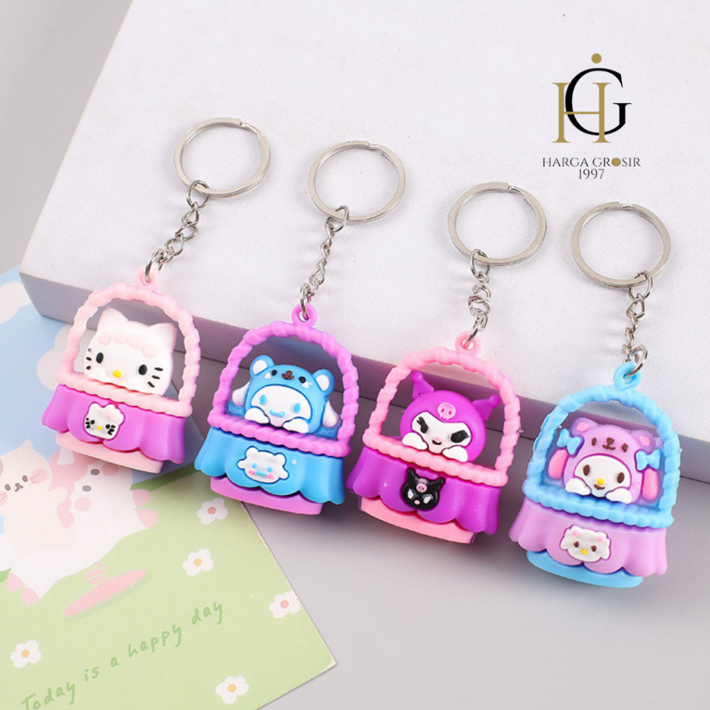 Gantungan kunci KERANJANG ISI SANRIO bahan karet lucu aksesories tas bagus imut ganci kuromi terjangkau bisa