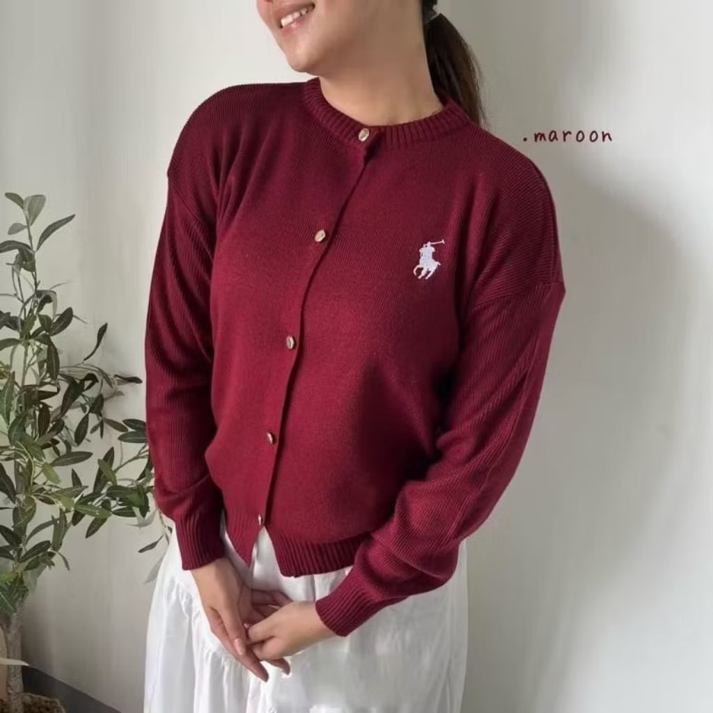 Cardigan Rajut Polo Horse Acrilic Knit Premium Tebal Kancing Gold Ataans Outer Cewek termurah