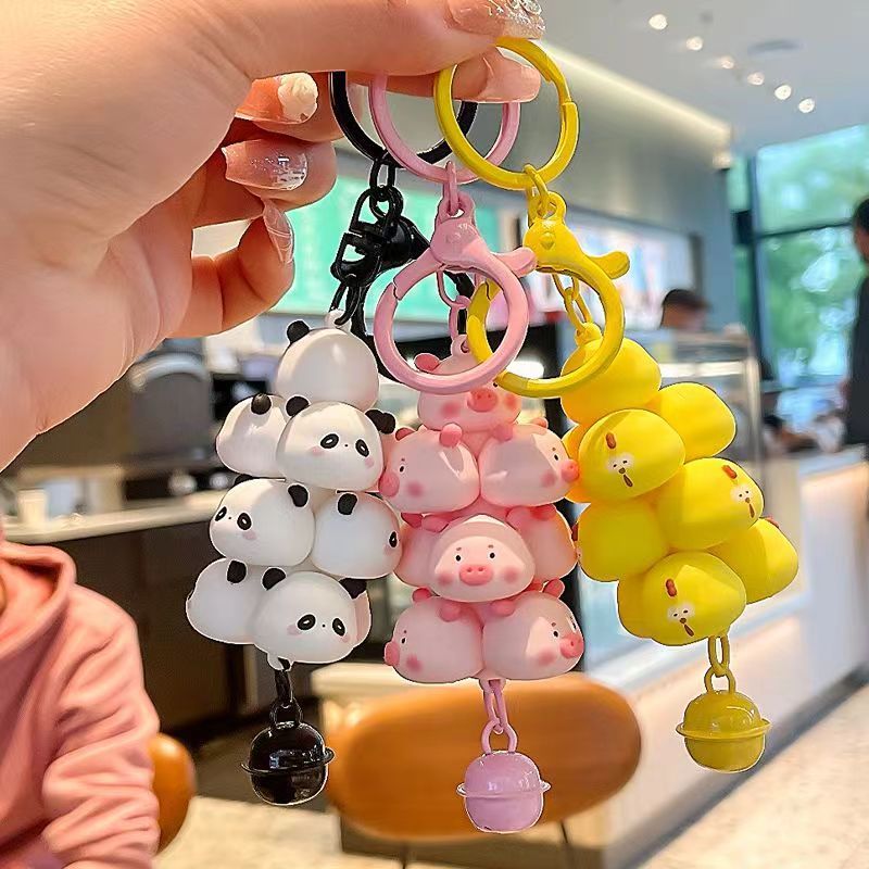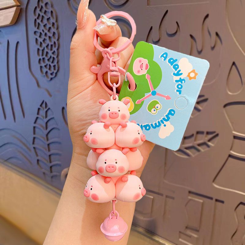 Gantungan Kunci Babi Kartun Kawaii yang Dapat Ditumpuk Lonceng Pasangan Pelajar Kreatif Ransel Gantung Dekorasi Casing P