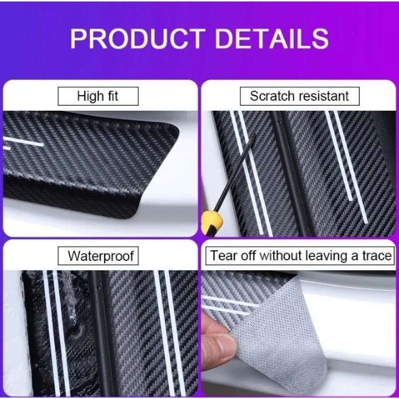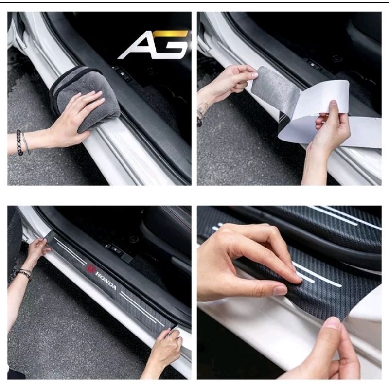 TERMURAH 4 PCS STICKER PIJAKAN PINTU - SILL PLATE carbon Fiber- Otosoo Indonesia