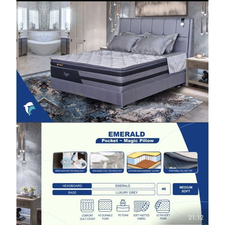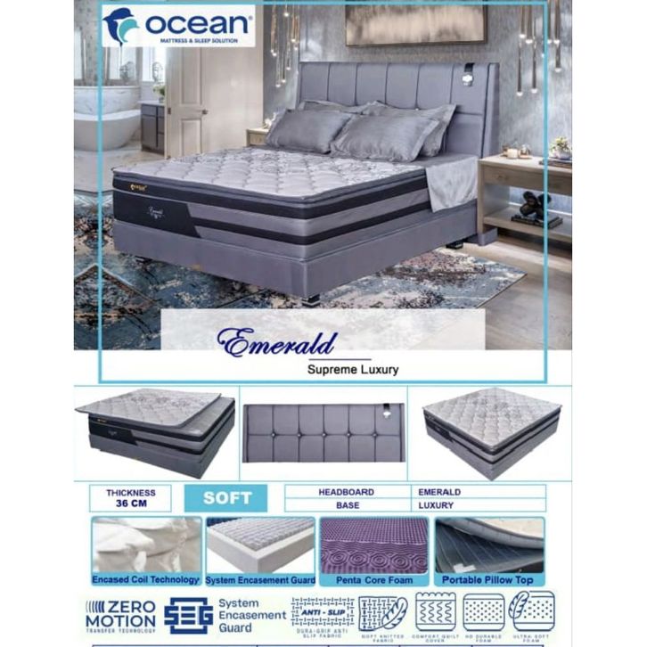PROMO Kasur Ocean Springbed Emerald Full set Portable Pillow Top T36 Cm - kasur spring bed ocean Spring bed size 160 -