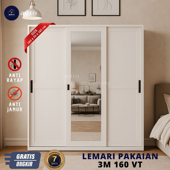 PROMO ASTRO LP 3M2 - LEMARI PAKAIAN BESI 3 PINTU SLIDING / LEMARI BAJU BESI ORIGINAL