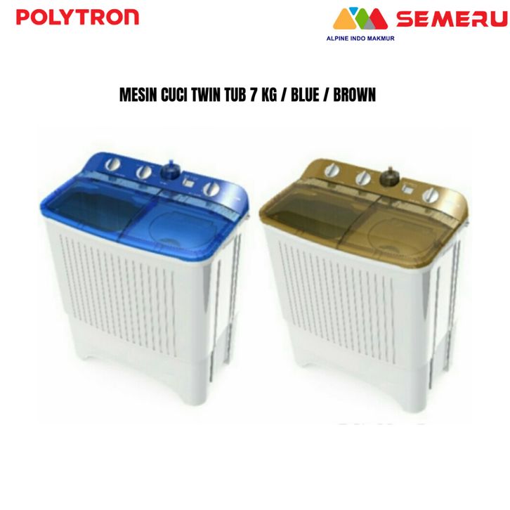 POLYTRON MESIN CUCI TWIN TUB 7 KG / BLUE / BROWN PWM-7072 B KHUSUS MAKASSAR