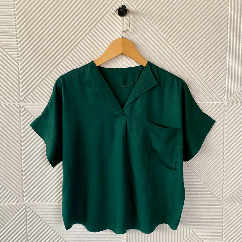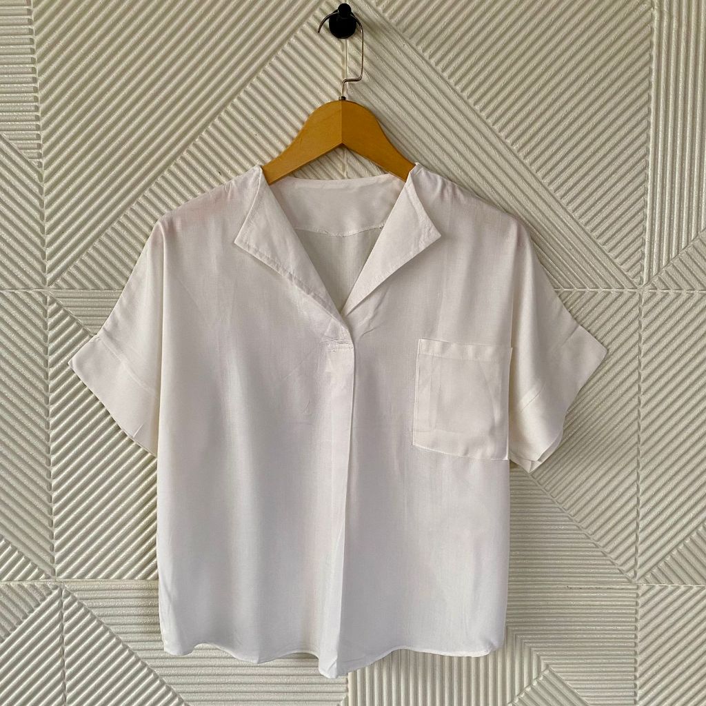 Syafiqa - Disa Shirt / Kemeja Lengan Pendek Wanita / Atasan V-Neck Basic polos Wanita / Korean Style / Kemeja Saku Katun