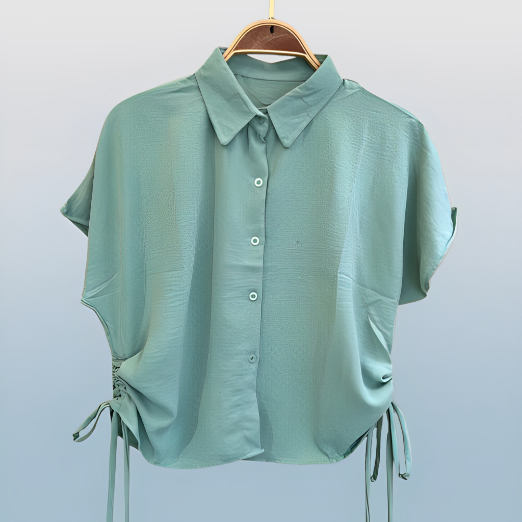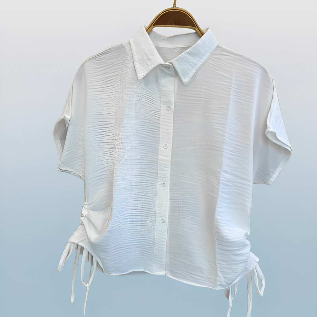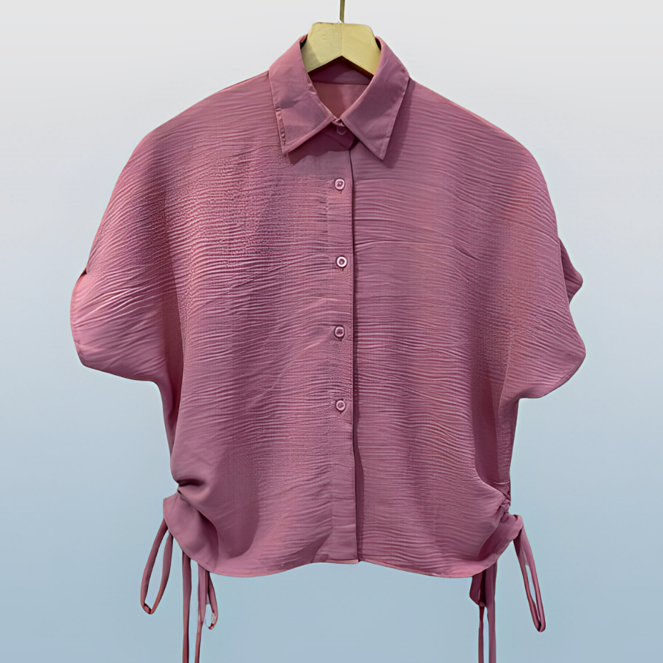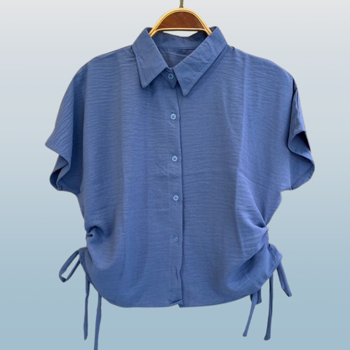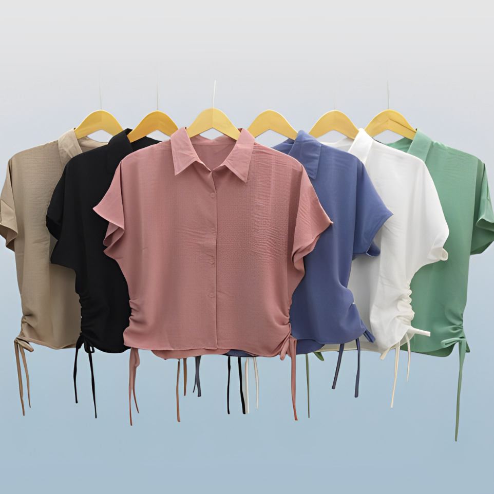 Terlaris Kemeja Wanita Crop Lengan Pendek Crinkle Tali Samping