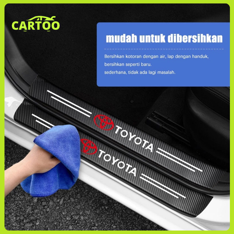 CARTOO 4Pcs Sticker Pelindung Sill Plate / Stiker Pelindung Pijakan Lantai Pintu Mobil / Universal Carbon Fiber Car Door