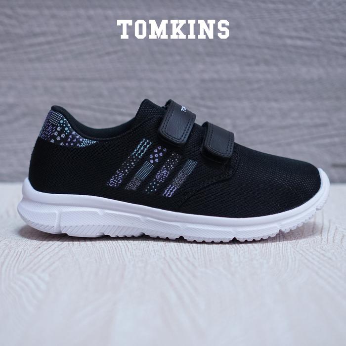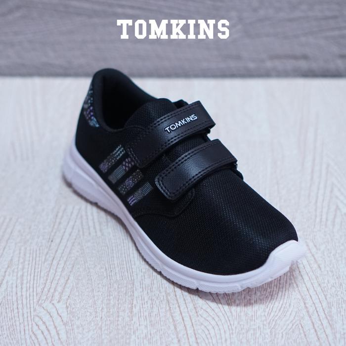 TERLARIS TOMKINS BACALL HITAM PUTIH SEPATU ANAK REMAJA PEREKAT SNEAKERS CASUA 33