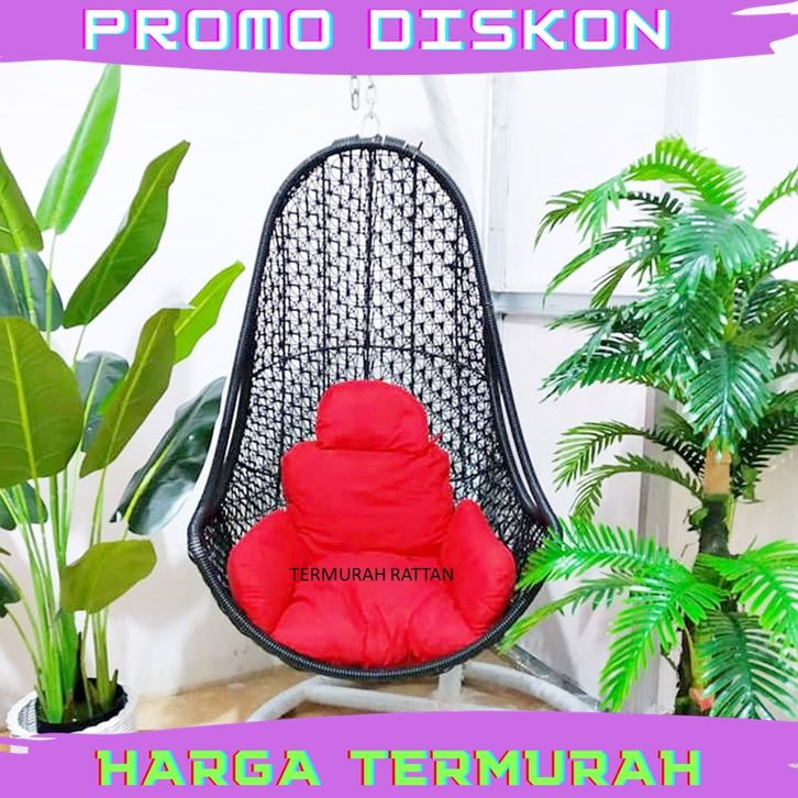 Kursi Ayunan Gantung Besi Inul Rotan Sintetis Plus Busa Jok