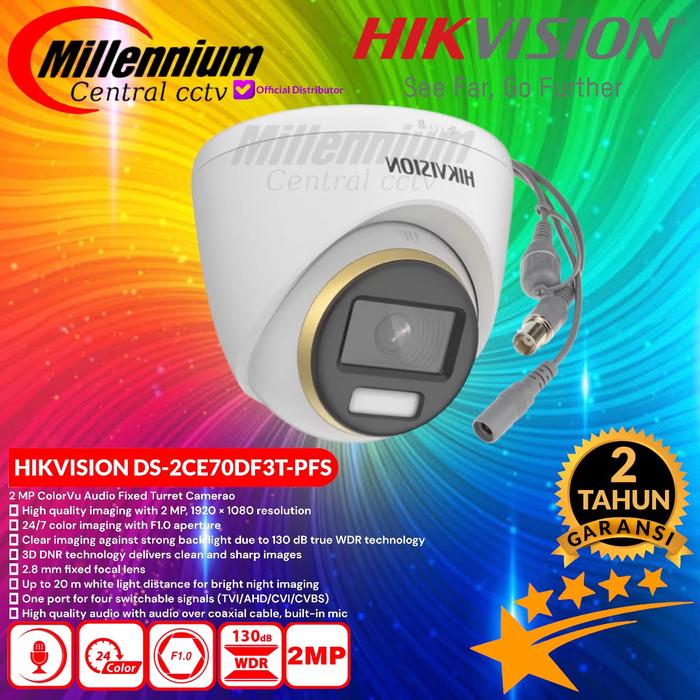 Camera Cctv Indoor Colorvu + Audio 2Mp Hikvision Ds-2Ce70Df3T-Pfs