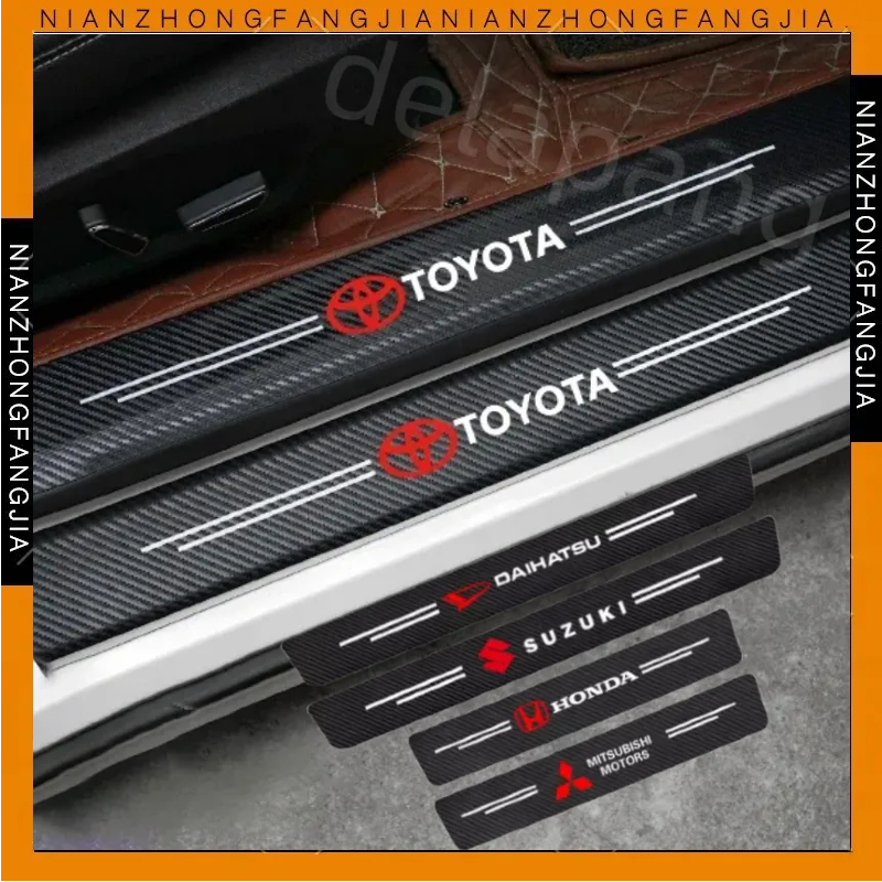 5pcs/4pcs Sticker Pelindung Sill Plate Stiker Mobil 3D Carbon Fiber Untuk Toyota Honda Stiker Pelindung Pijakan Lantai P