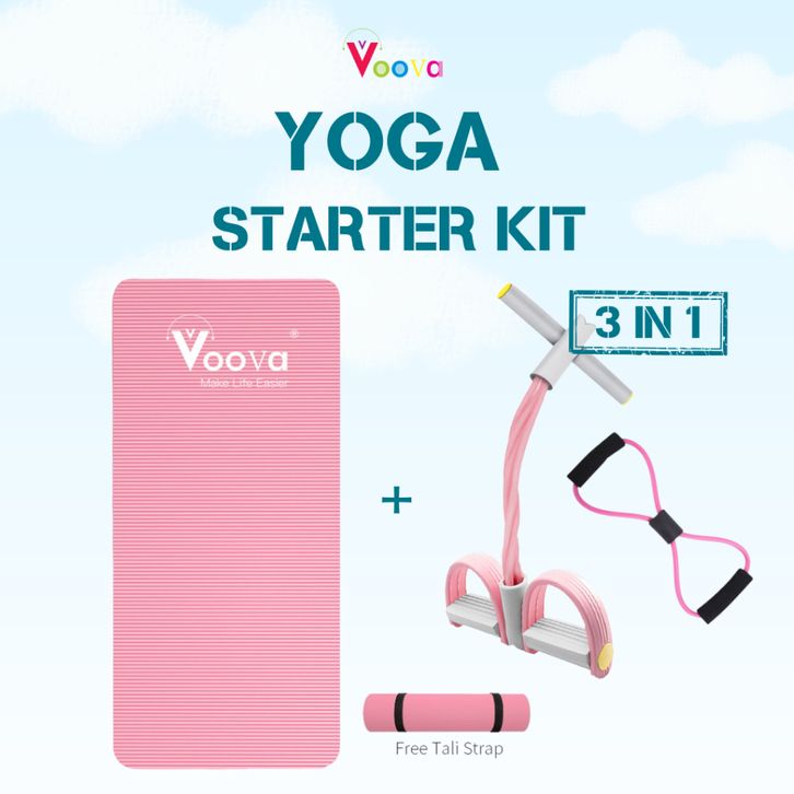 VOOVA 3 IN 1 Set Olahraga/ Set Yoga/ Paket Lengkap Alat Olahraga/ Matras dengan Tummy Trimmer dan Tali Yoga Elastis