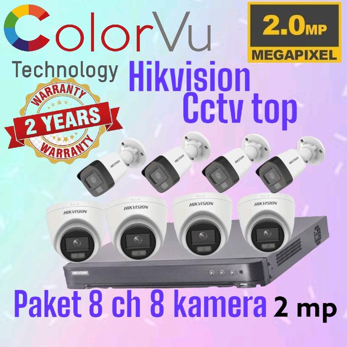 Paket Cctv Hikvision 8 Ch 2Mp Colorvu Full Hd 1080P - Non Harrdisk
