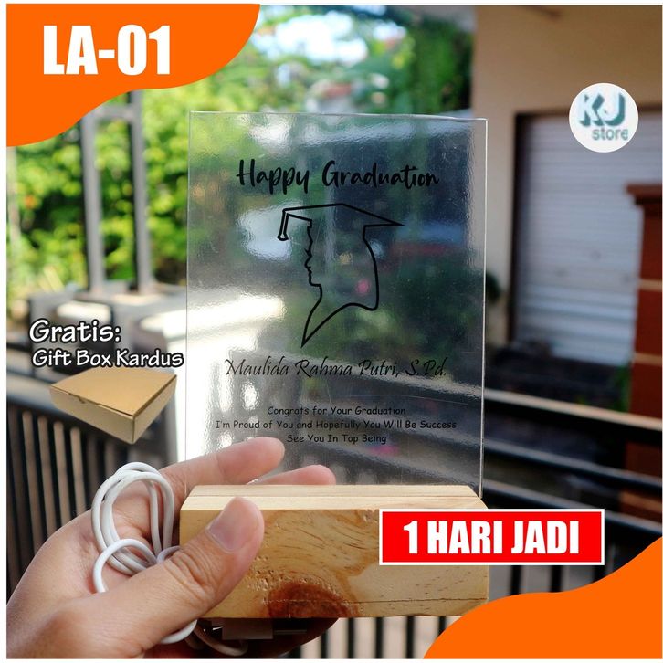 Kado Ulang tahun Akrilik Plakat Wisuda Custom Acrylic Foto Hadiah Ultah Engagement Gift Box Acrylic LED Anniversary LETT