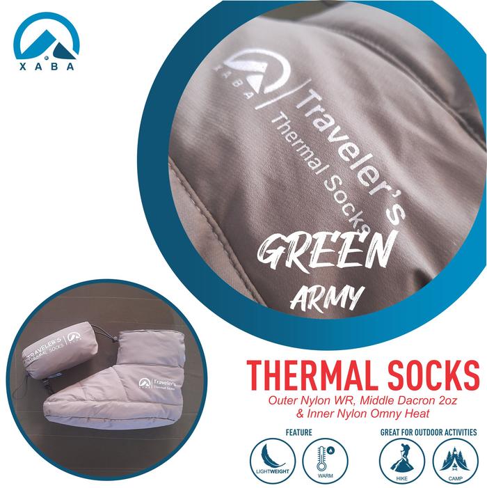 Travelers Thermal Socks Xaba - Kaos Kaki Camping - Sarung Kaki Gunung - Green Army, M