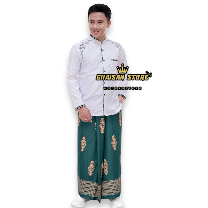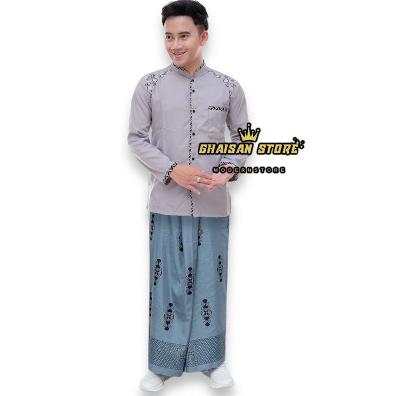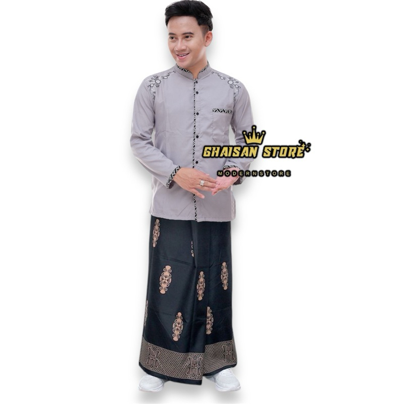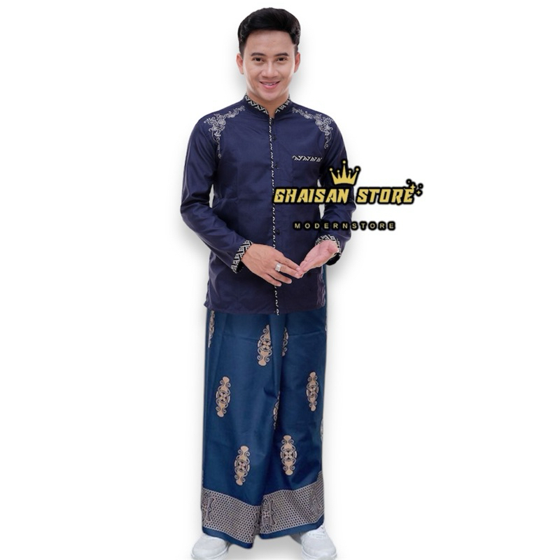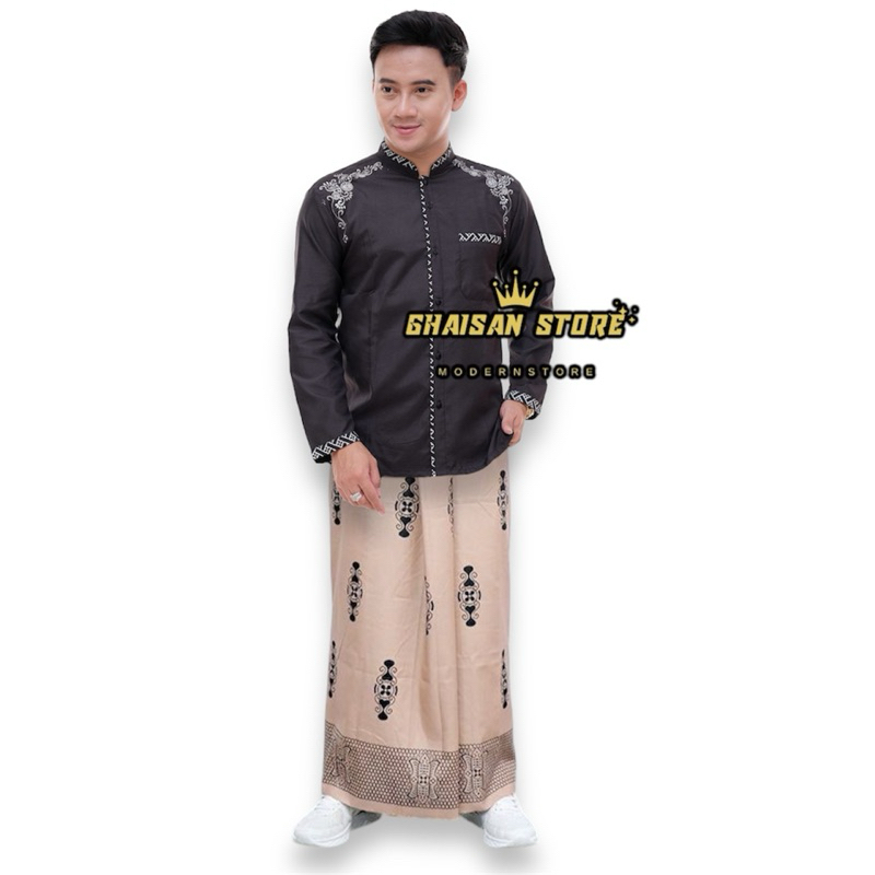 READY Setelan Sarung Dan Baju Koko Muslim Pria Lengan Panjang Sudah Dapat Satu Paket Sarung Dan Koko