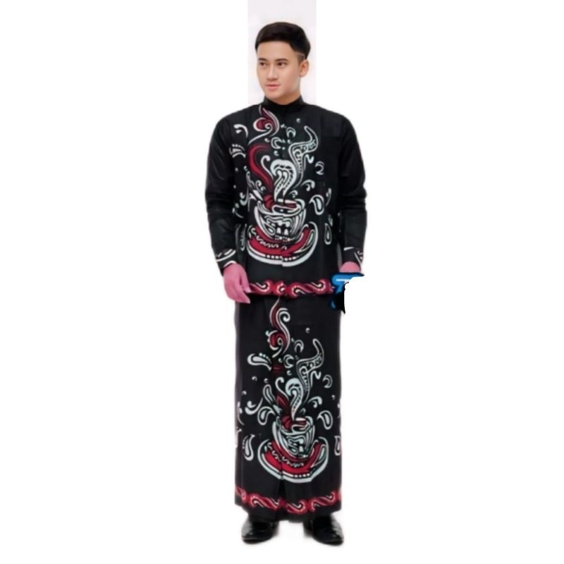 koko & sarung busana muslim baju koko setelan sarcel Setelan Baju Koko dan Sarung Dewasa Motif Wayang Sedeku Cangkir Kop