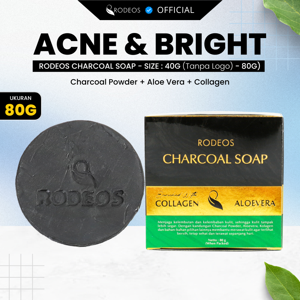 RODEOS Charcoal Soap - Facial Wash Sabun Cuci Muka Sabun Brightening, Bamboo Collagen & Aloevera, Peraw