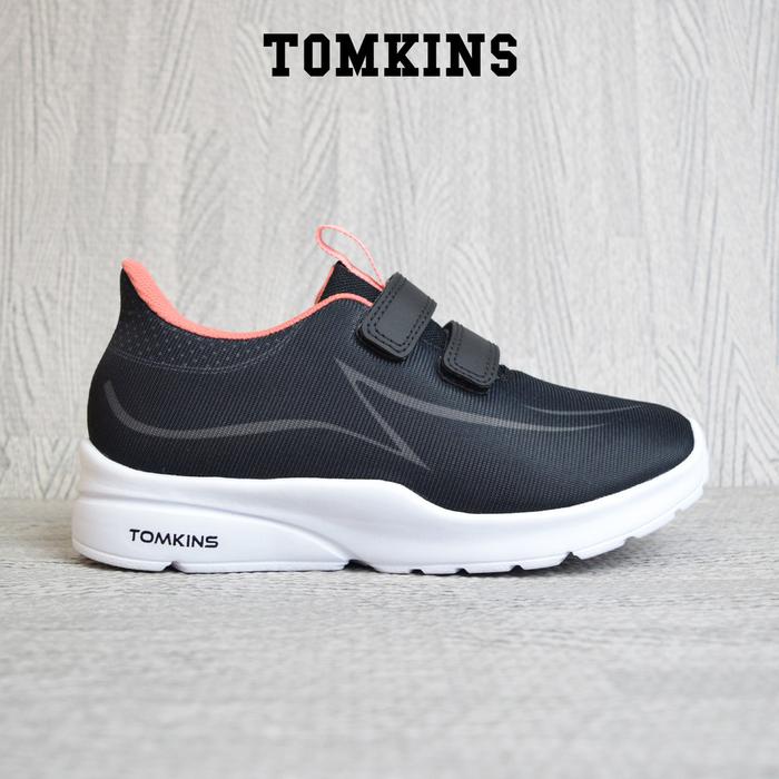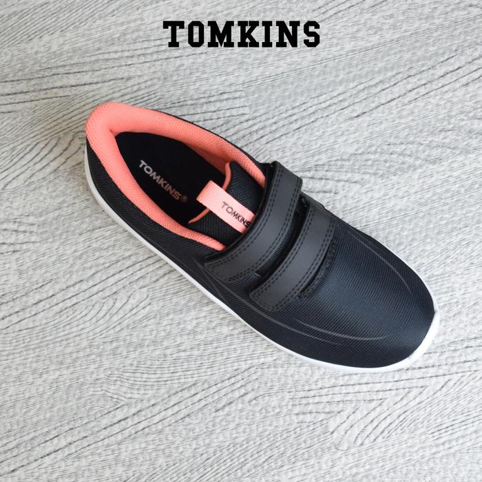 TERLARIS TOMKINS HOPPERS VC HITAM PUTIH SEPATU SEKOLAH PEREKAT ANAK REMAJA UKURAN 37