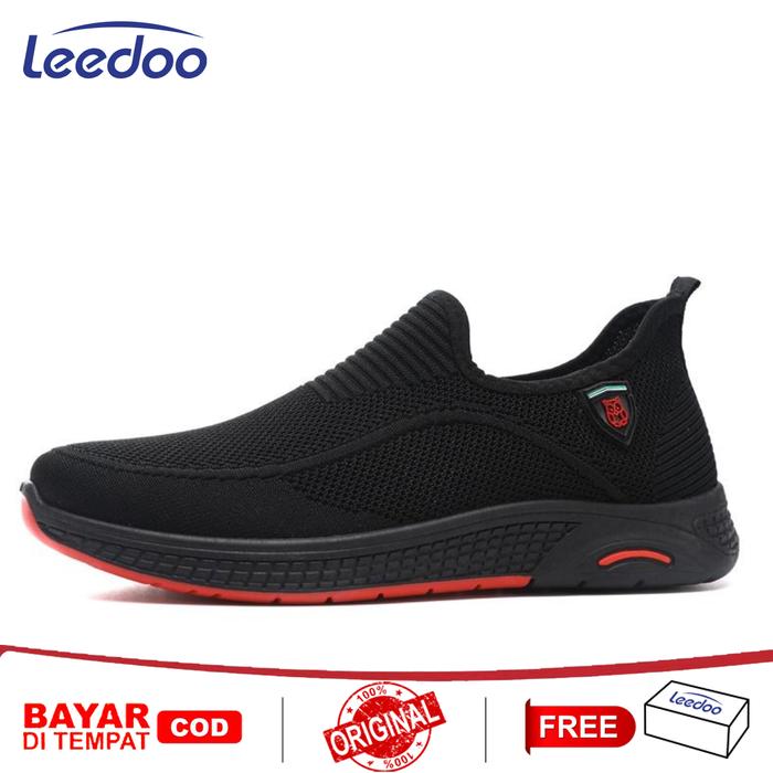 TERLARIS LEEDOO SLIP ON PRIA SEPATU SNEAKERS PRIA RUNNING SHOES FASHION PRIA SEPATU PRIA HITAM CASUAL SEPATU SEKOLAH SISWA MR131 HITAM 39
