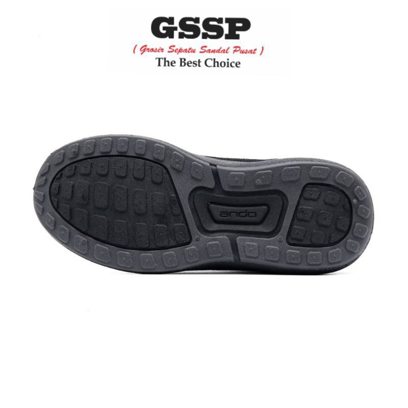 sepatu Sneakers dewasa sepatu ANDO LIAM full hitam Dan Hitam Putih tali size 35-43