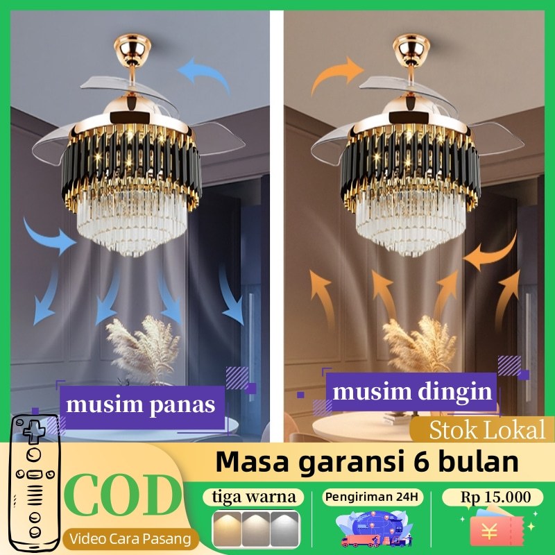 one_leaf lampu kipas kristal angin plafon aesthetic lampu gantung r tamu meja makan remote control kamar tidur minim