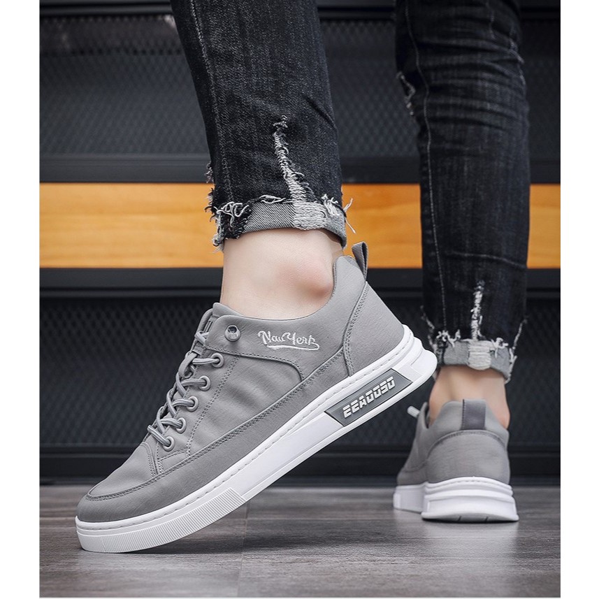 MYLY Sepatu Sneakers New York Hitam Abu Pria Wanita Casual Kanvas Import Korea Style