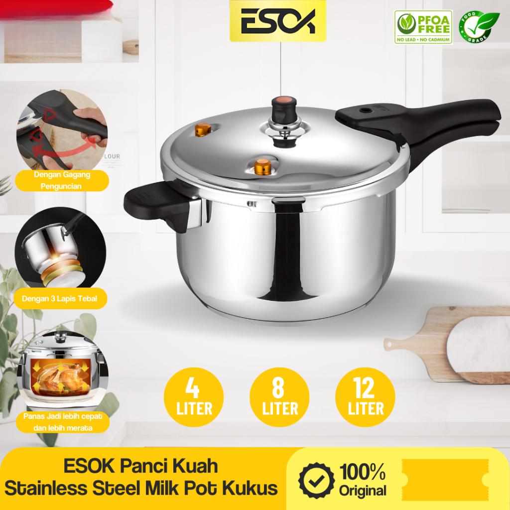 ESOK Panci Presto Full Stainless Steel 304 Super Tebal Awet 4/8/12 Liter